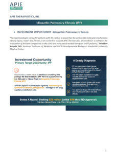 APIE Therapeutics initiated a $35M Series A financing round to carry the lead compound, APT101, from IND enabling through IND clearance and a planned Phase 1 clinical study for the indication of system sclerosis (SSC) / systemic sclerosis-interstitial lung disease (SSc-ILD).